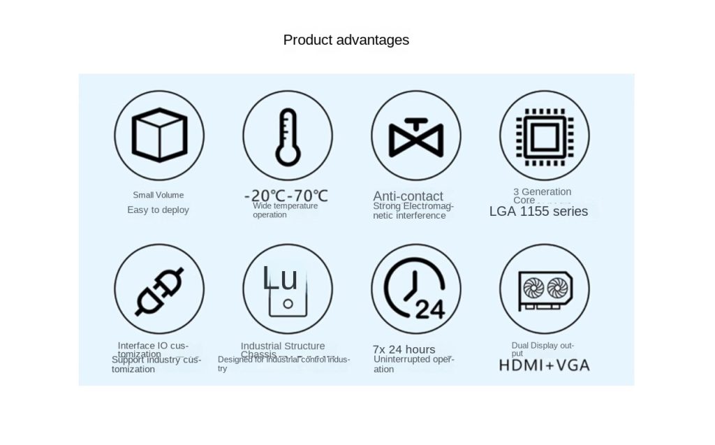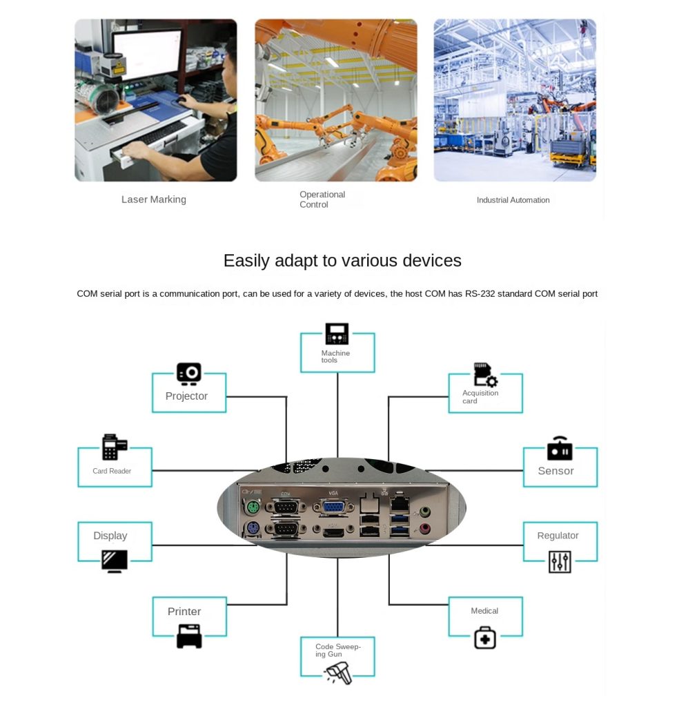 The IPC-QT7512 is a reliable and cost-effective industrial computer equipped with an Intel Celeron G2020 CPU, offering stable performance for a variety of industrial applications. With HDMI support, multiple configuration packages, and a durable black chassis, it strikes a balance between functionality, customisation, and practical design. Whether for automation control or visual data output, this model delivers dependable computing in demanding environments.