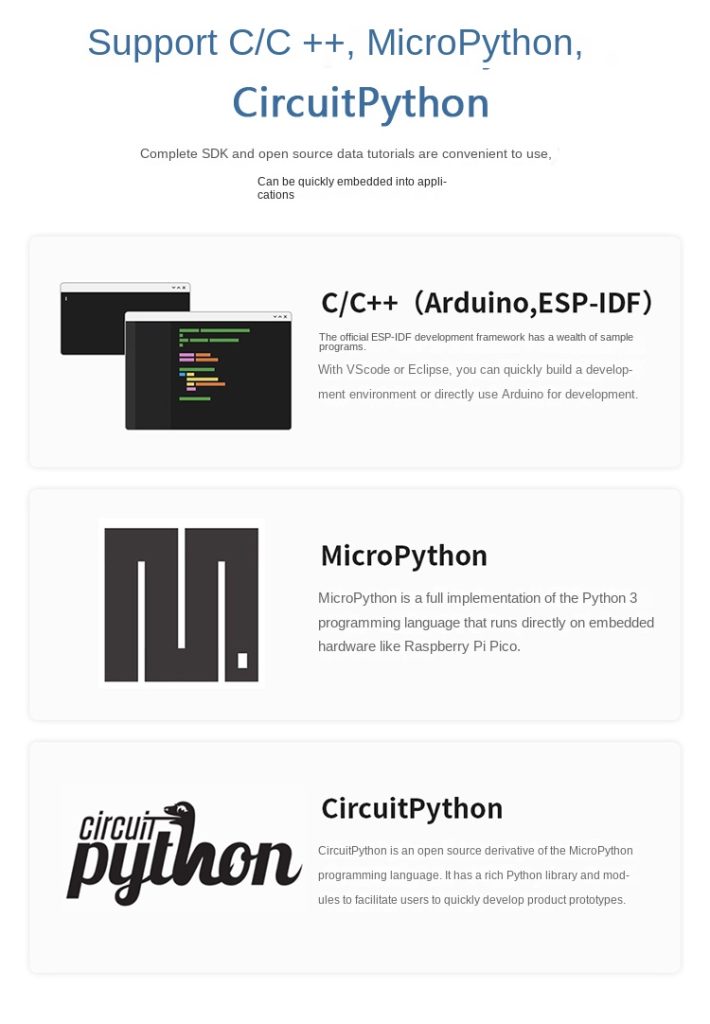 6. Broad development support including Arduino and MicroPython, providing rich libraries and simplified debugging for faster project iteration.