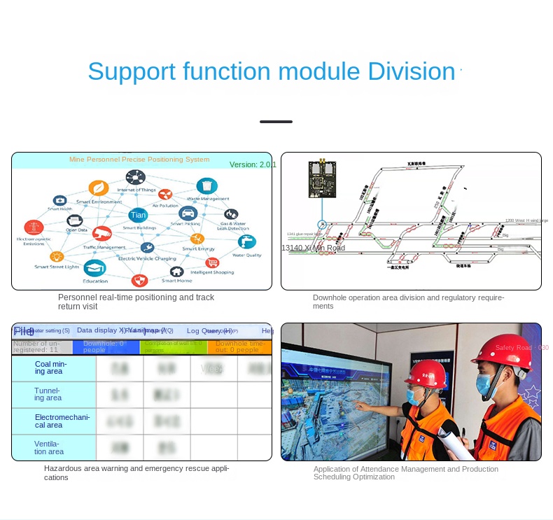 This UWB positioning system utilizes a domestic DW1000-based positioning board with UART and RJ45 interfaces, specifically designed for high-precision, interference-free equipment tracking in tunnel excavation and underground construction sites. It ensures accurate positioning even in dusty, obstructed, and complex environments. Real-time data transmission via Ethernet enables centralized monitoring and efficient operational control. The system also features a boundary-crossing alarm that immediately notifies operators when equipment moves beyond preset safety zones, enhancing safety and preventing equipment loss.