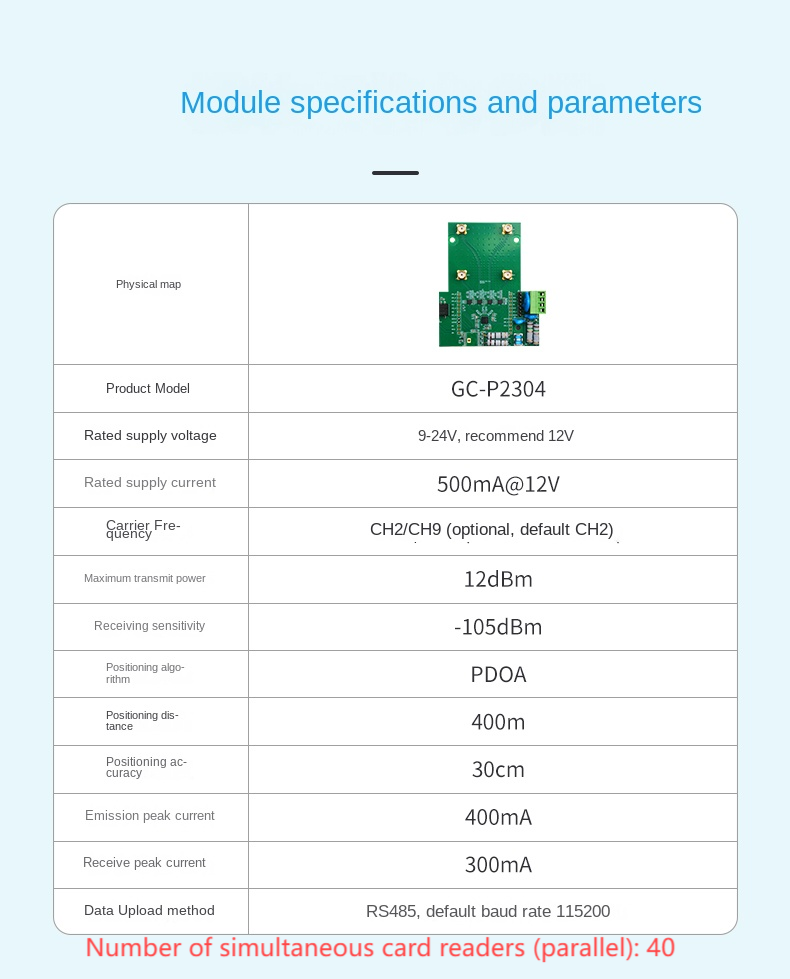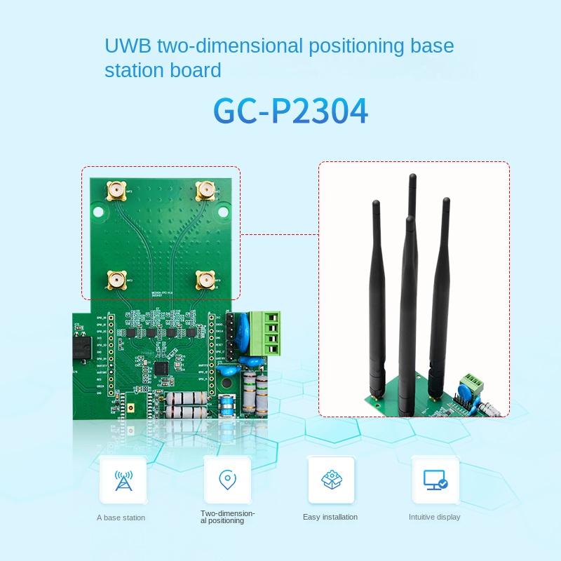 The GC-P2304 enables high-precision, single-base station two-dimensional positioning and ranging for excavation face equipment. Built with domestic UWB chips, it features an RS-485 interface for seamless integration with industrial control systems.