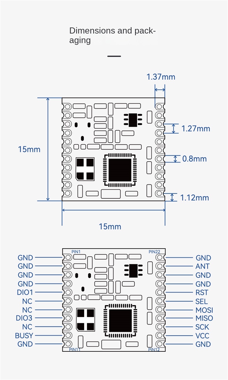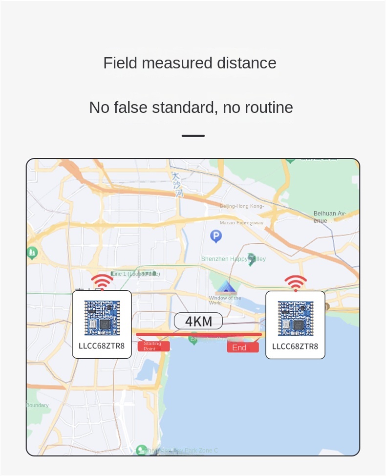 The LLCC68ZTR8 is a compact, low-power LoRa wireless RF module operating at 868 MHz, designed for EU LoRaWAN applications. Built on the LLCC68 chip, it supports SPI communication for easy integration with microcontrollers, enabling long-range, energy-efficient wireless transmission. With its compact size and stable performance, the LLCC68ZTR8 is ideal for IoT, Industrial IoT (IIoT), and Smart City deployments.