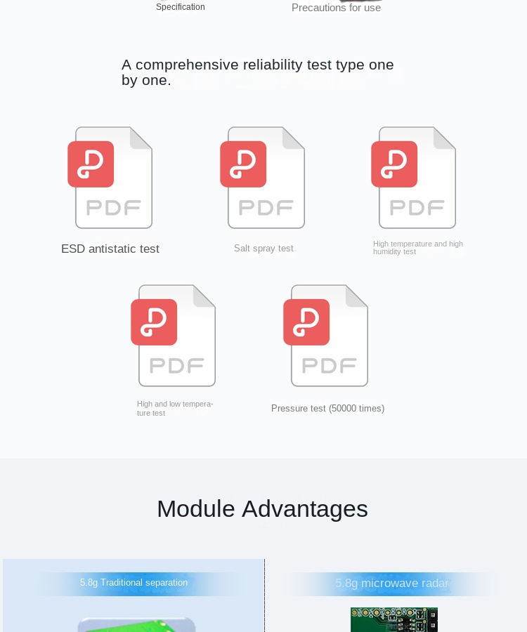 | RF | Standard Certification | FCC/CE/SRRC/RoHS |