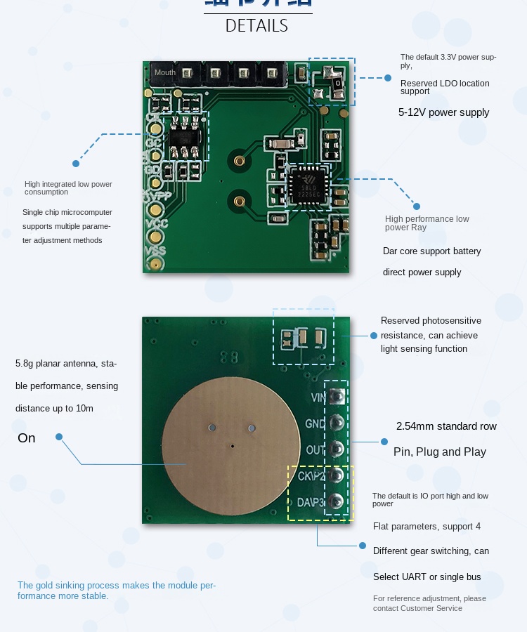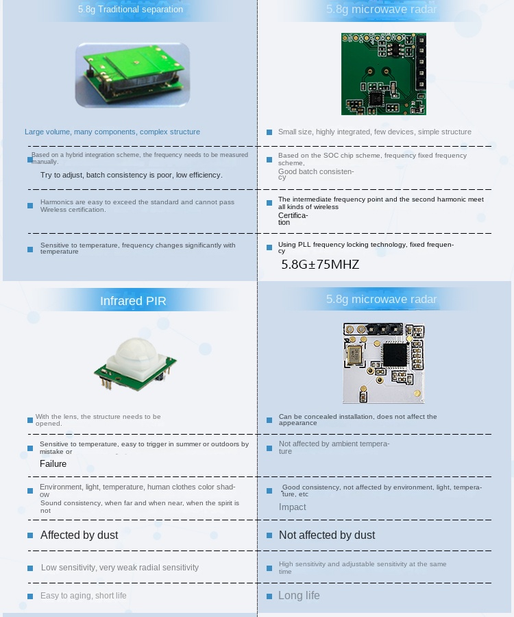 Built-in 5.8G radar SoC: High integration with excellent batch consistency