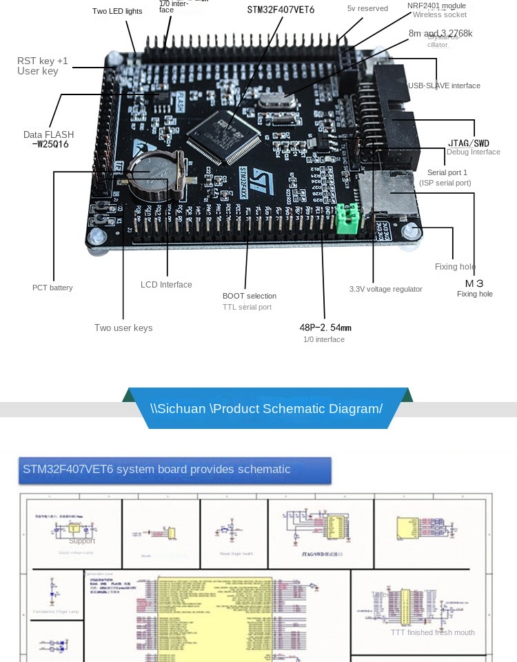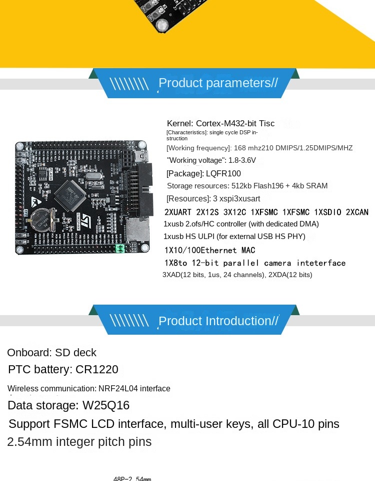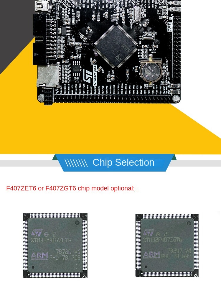 The STM32F4 series microcontroller features a high-performance ARM Cortex-M4 core with frequencies up to 168MHz or 180MHz. With DSP instructions, floating-point support, ample memory, and versatile peripheral interfaces, it delivers fast data processing and precise control. Low-power operation and extensive development resources make this microcontroller suitable for a wide range of applications, including industrial automation, consumer electronics, medical equipment, automotive systems, and educational projects.